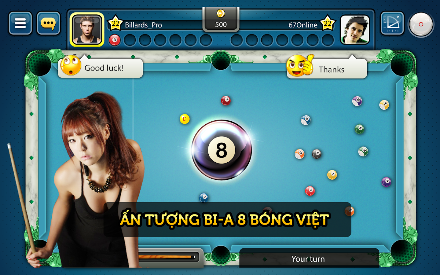 Khi chơi game bida 3D Billiards pro bạn sẽ có được nhưng cảm giác thi đấu bida một cách chân thực nhất, mỗi cơ đánh luôn đòi hỏi bạn phải có những tính toán, căn chỉnh góc, lực đánh một cách chính xác nhất.